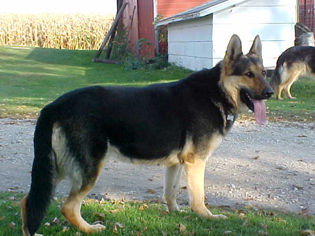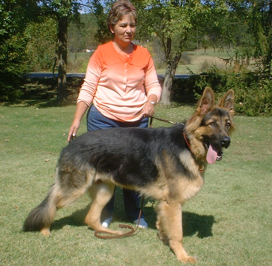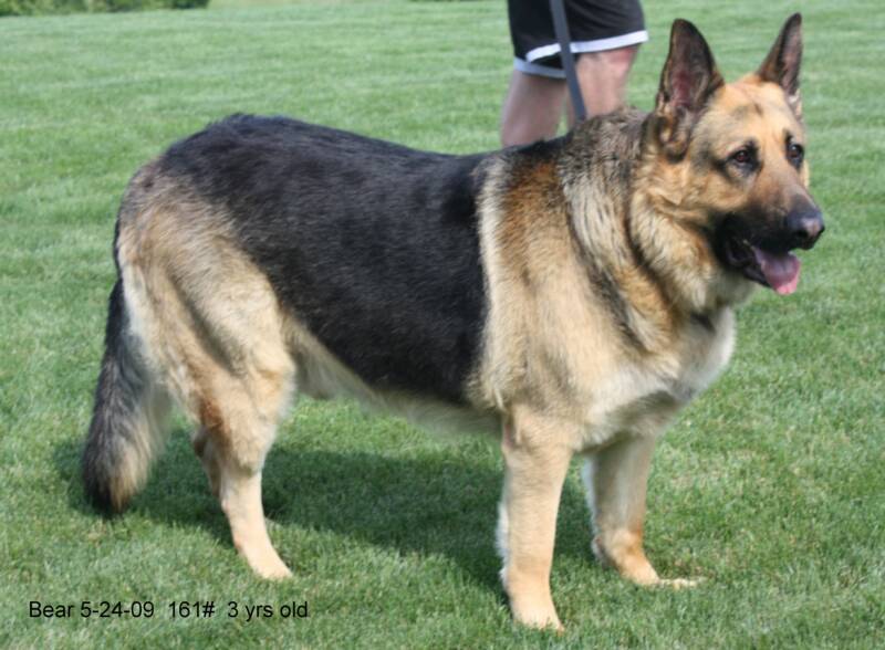 Zack is OFA'd good , 115lbs at 2yrs old. He has more filling out to do, standing 30" at shoulders, He has a very happy and stable temperament, loves everyone and producing offspring like himself with some males even larger .such as Bea's big Kash, scroll down to see this guy, who is coming to visit me first part of Oct, can't wait..